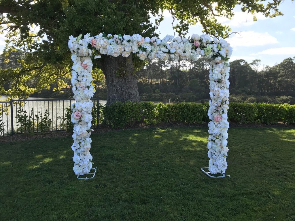 Hire this stunning floral picture frame as a beautiful backdrop for photos at your wedding. Two uprights and one crossbar of beautiful peonies, roses and hydrangea. Self supporting and easy to assemble for self set up. Installation by our team is also an option.